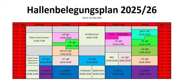 Hier finden Sie unseren aktuellen Hallenbelegungsplan